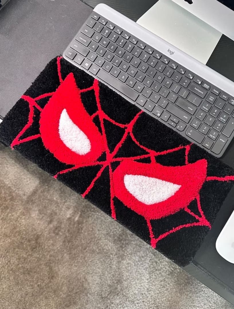 Give your desk a sleek, mysterious upgrade with the Black Spider-Man-Inspired Keyboard Handmade Rug by Mayur Rugs. Perfect for gamers and Marvel fans, it adds bold style and comfort to your setup.