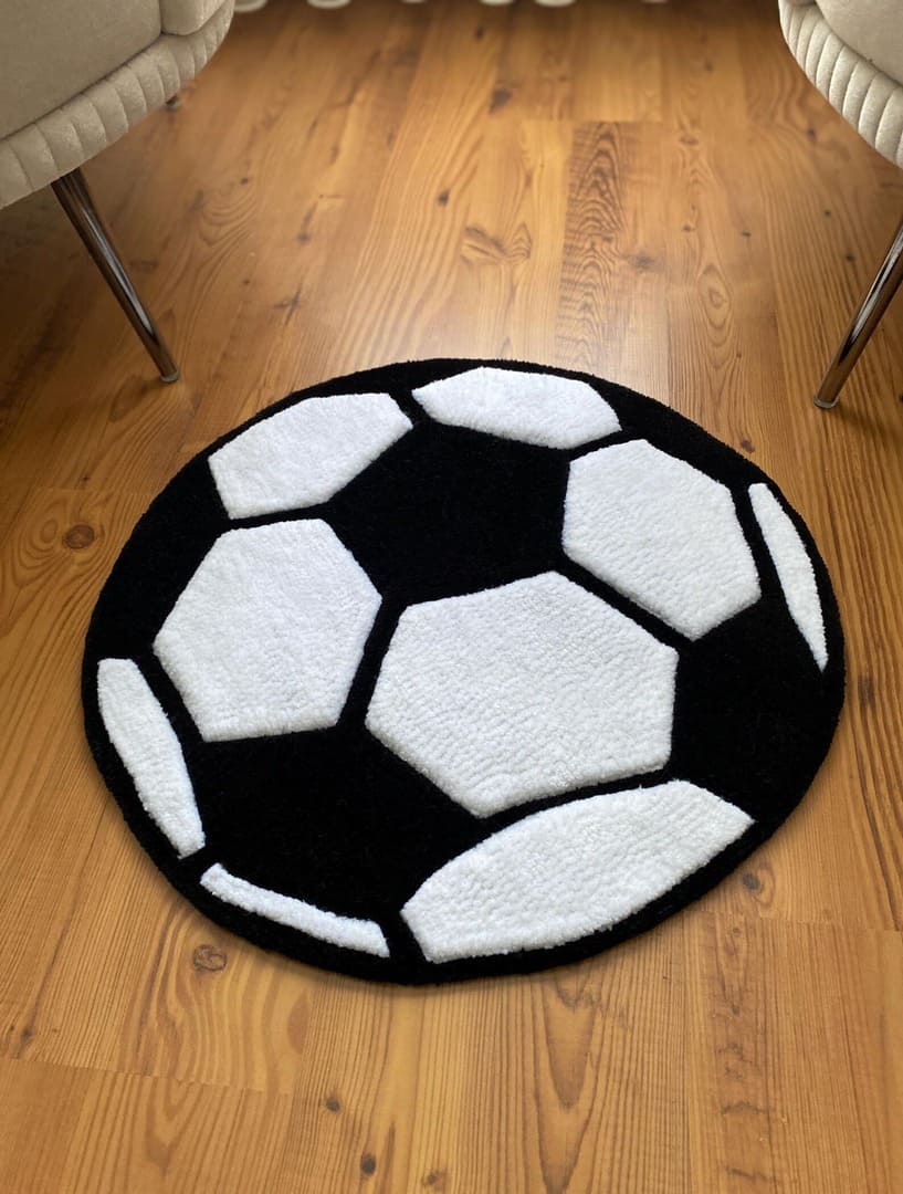 Add a sporty vibe to your interiors with this Football Handmade Rug, blending passion with craftsmanship.