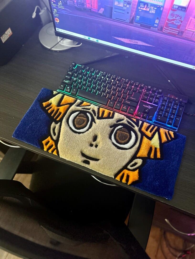 Add a burst of energy and personality to your desk with the Zenitsu-Inspired Keyboard Handmade Rug by Mayur Rugs. Designed for Demon Slayer fans and anime lovers, this vibrant rug brings bold colors, dynamic patterns, and Zenitsu’s electrifying spirit to your workspace while offering soft comfort under your hands.